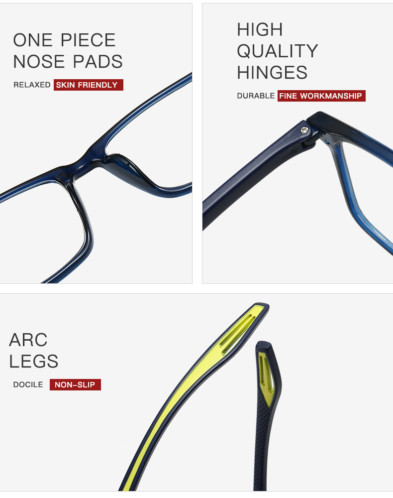 High Flexibility Material: Our glasses are crafted from a high-flexibility material that ensures a comfortable fit without any discomfort or pressure on your face. Say goodbye to those pesky red marks and enjoy extended wear without any pinching or squeezing.